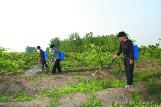 果农抓紧时间除草杀虫