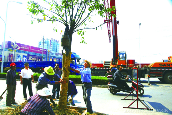 县园林部门换栽香樟树