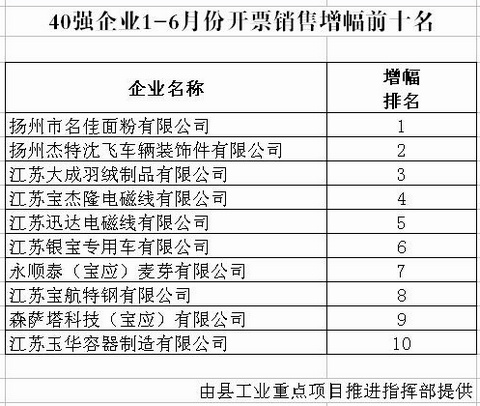 县40强企业1-6月份开票销售增...