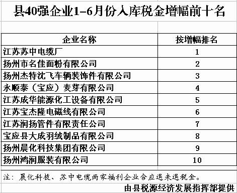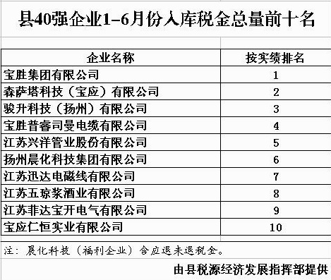 县40强企业1-6月份入库税金总...