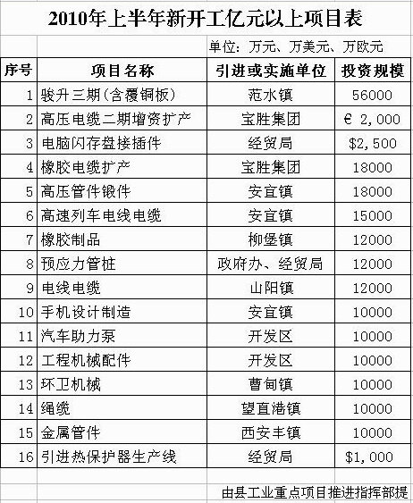2010年上半年新开工亿元以上项目