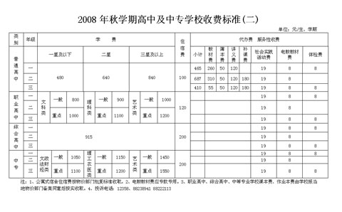 08年秋学期高中及中专学校收费...
